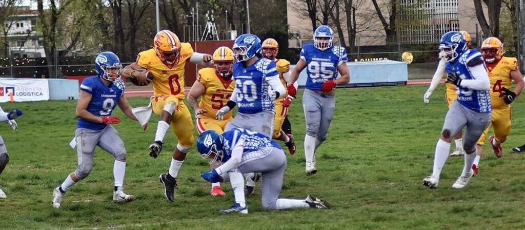 Una tarde inolvidable de fútbol americano en el Polideportivo Valleaguado (Camioneros Park) marcó el derbi más longevo del football madrileño: Camioneros de Coslada vs. Osos Rivas.