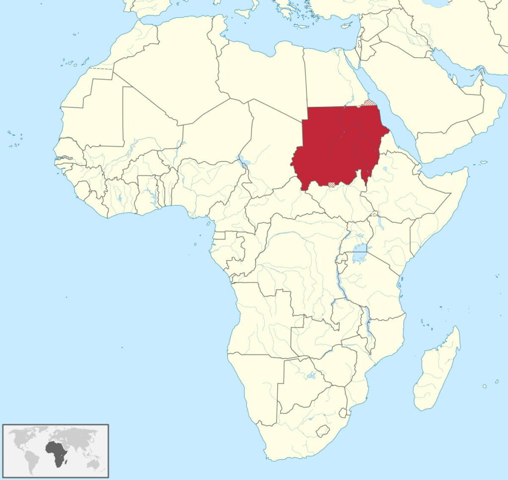 Mapa: Imagen de la situación geográfica de Sudán en rojo