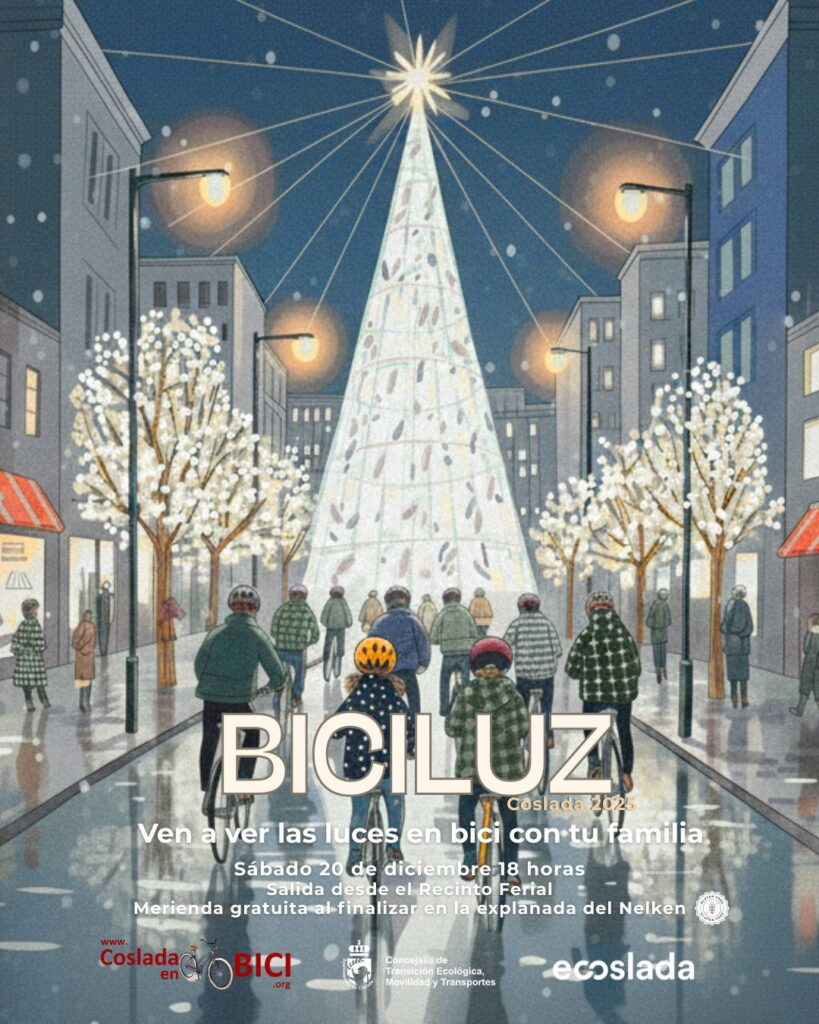 Coslada acogerá el próximo 20 de diciembre una actividad navideña diferente y sostenible: un paseo en bicicleta para disfrutar del alumbrado de Navidad desde una perspectiva ecológica y saludable. La iniciativa invita a la ciudadanía a recibir estas fiestas “sobre dos ruedas” y a reivindicar un modelo de ciudad más amable con las personas y el medio ambiente.