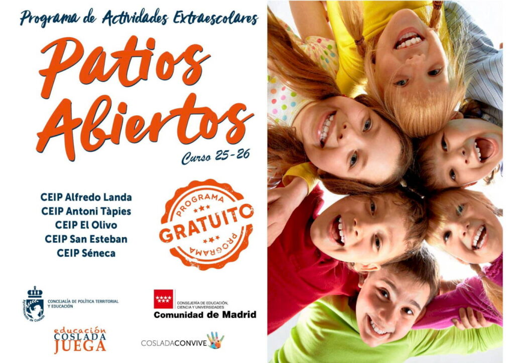 El Ayuntamiento de Coslada, en colaboración con la Consejería de Educación de la Comunidad de Madrid, ha puesto en marcha la iniciativa Patios Abiertos, con el objetivo de ofrecer a los niños y niñas de la ciudad un espacio seguro y adecuado para jugar, realizar actividad física y disfrutar del aire libre, independientemente del centro en el que estén escolarizados.