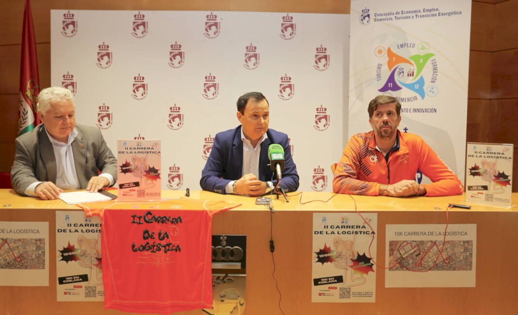 El alcalde de Coslada, Ángel Viveros, el concejal delegado de Economía, Empleo, Comercio, Turismo y Transición Energética, Fernando Romero, y el presidente de la Unión Atlética Coslada, Francisco del Saz, han participado esta mañana en la presentación de la II Carrera de la Logística, que se celebrará el próximo domingo 26 de octubre a las 10:00 horas, con salida y meta en el Polideportivo de Valleaguado.