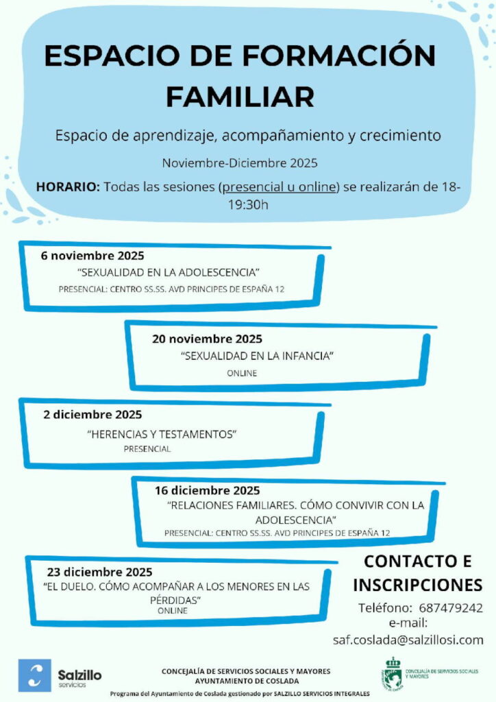 La Concejalía de Servicios Sociales y Mayores del Ayuntamiento de Coslada pone en marcha una nueva edición del Espacio de Formación Familiar, un programa de aprendizaje, acompañamiento y crecimiento dirigido a familias del municipio.
