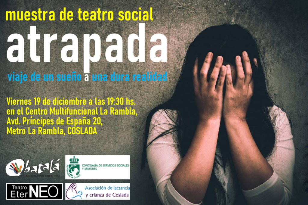 El Teatro Social regresa a los escenarios de Coslada con la obra “Atrapada” (Viaje de un sueño a la dura realidad), el próximo viernes 19 de diciembre, a partir de las 19:30 horas, en el Centro Multifuncional La Rambla de Coslada (Avd. Príncipes de España 20, Metro La Rambla).