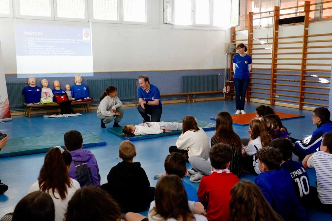 «Sois muy jóvenes y se trata de técnicas básicas de primeros auxilios, pero que vayáis adquiriendo ya estos conocimientos y herramientas es muy importante”, en palabras del edil delegado, que también se ha dirigido a las y los escolares durante el taller.