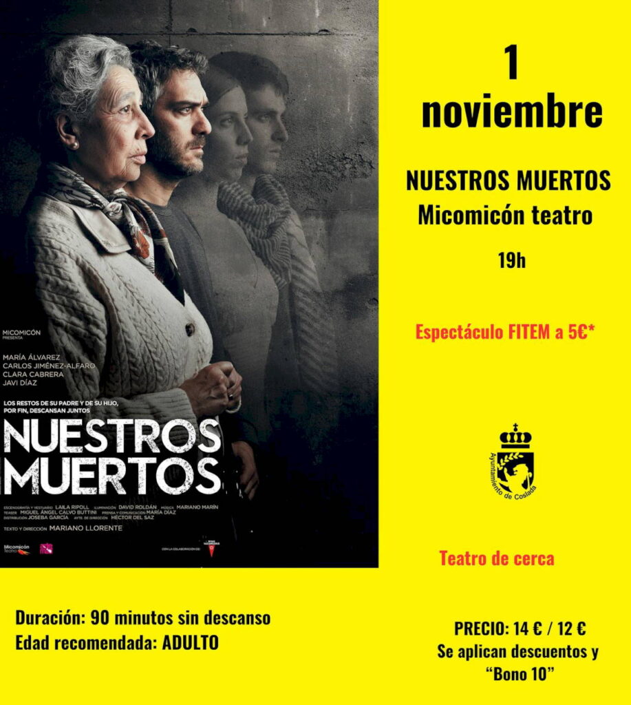 El Teatro Municipal de Coslada acogerá mañana sábado, 1 de noviembre, a las 19.00 horas, la representación de Nuestros muertos, una producción de Micomicón Teatro que invita a reflexionar sobre las heridas abiertas de la violencia y la memoria histórica.