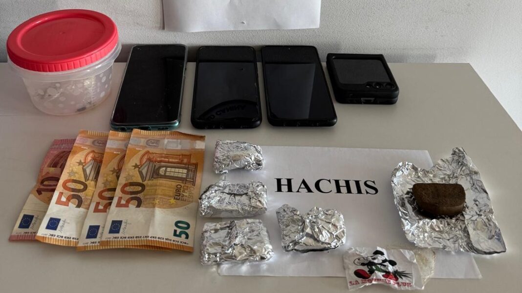 Tras la primera detección, los funcionarios, procedieron a un registro más exhaustivo, detectando el mismo can, oculto en el maletero, gran cantidad de la misma droga, así como dinero en efectivo y teléfonos móviles. La droga estaba dividida y oculta en un recipiente de plástico con tapa, en unidades envueltas en papel de aluminio.