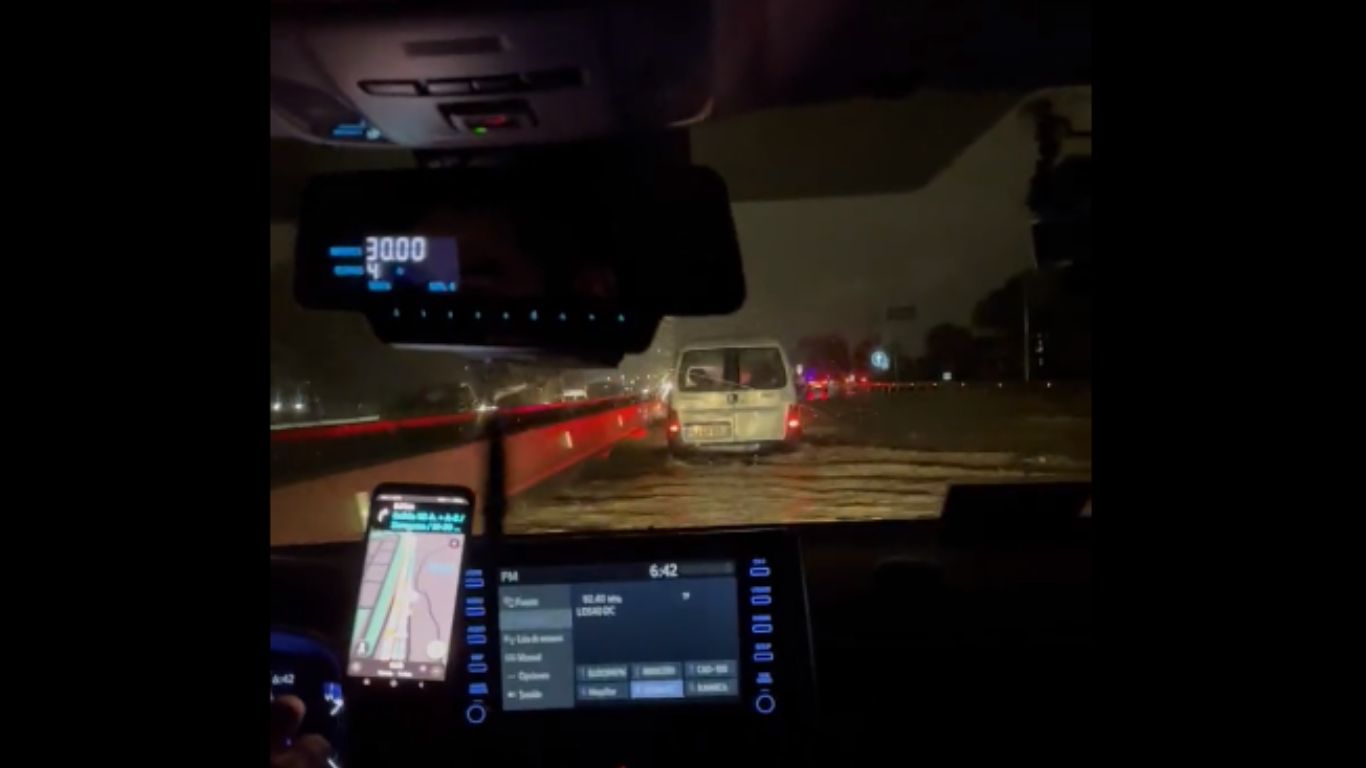 Distintos usuarios publicaban en redes sociales diferentes vídeos en los que se podía ver la magnitud de la inundación de la carretera y cómo el asombro se apoderaba de todos los que iban en el coche.