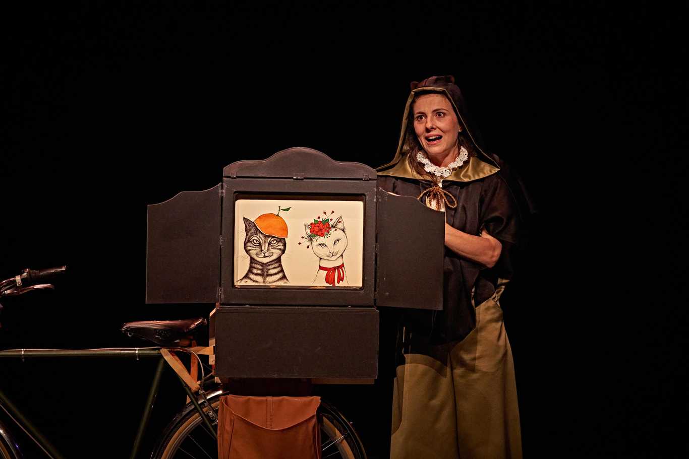 En Lope sobre ruedas se recupera la forma tradicional japonesa del Kamishi bai o “Teatrito de madera”. En Japón se utilizaba habitualmente colocado en la parte trasera de una bicicleta y así el cuentacuentos podía ir cambiando de ubicación sin dificultad.