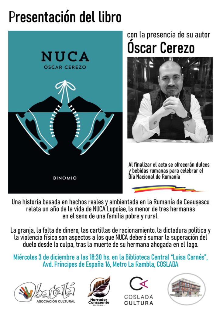 El próximo miércoles 3 de diciembre, será presentada la novela ‘Nuca’ de Óscar Cerezo, a las 18:30 horas en la Biblioteca Central de Coslada Luisa Carnés.