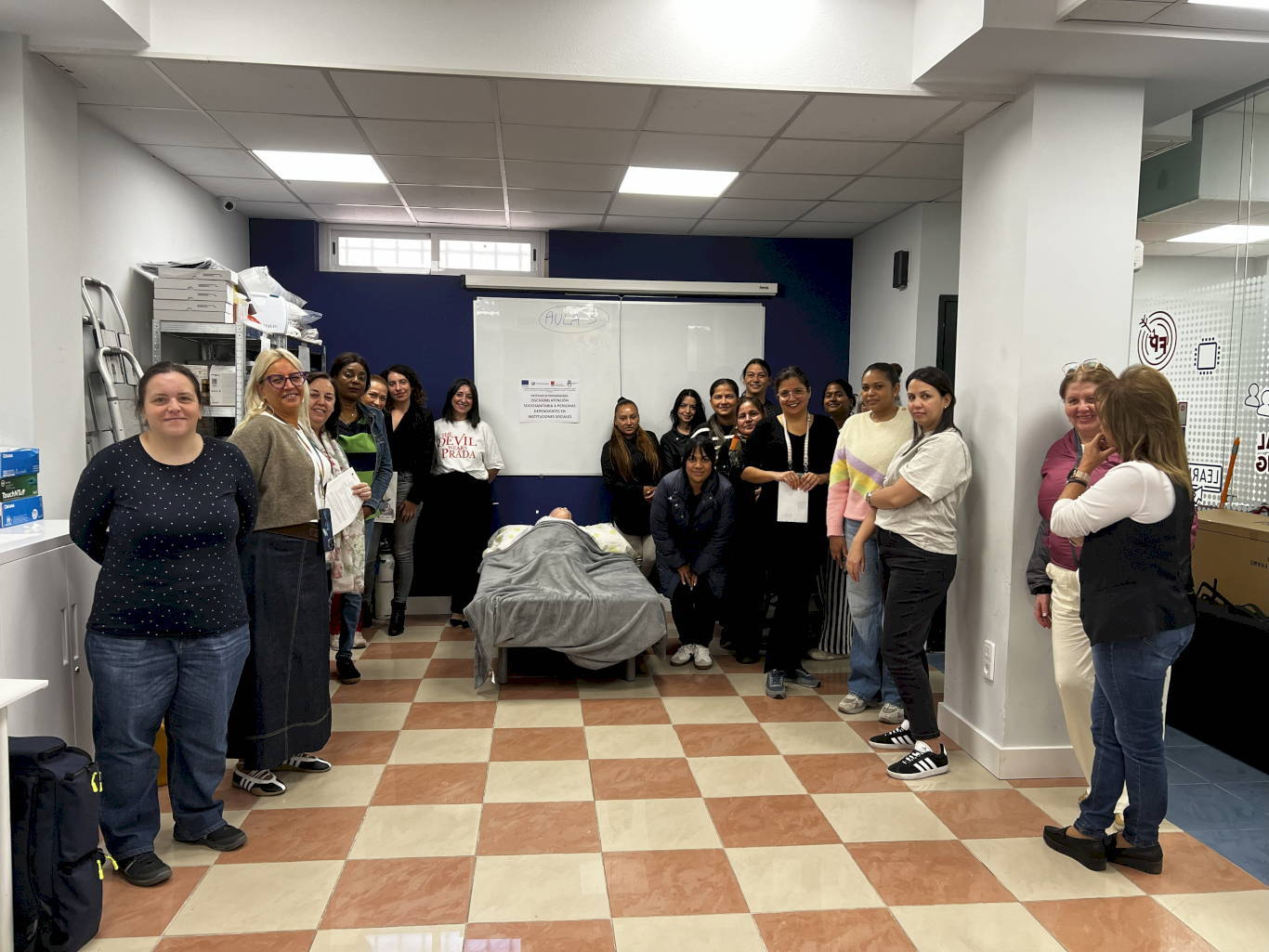 La Concejala de Igualdad y Diversidad del Ayuntamiento de Coslada, Paz Garretas, ha visitado a las alumnas del Certificado de Profesionalidad en Atención Sociosanitaria a Personas Dependientes en Instituciones Sociales, una formación oficial, gratuita y con gran proyección laboral, dirigida a mujeres y con prioridad para víctimas de violencia de género y mujeres desempleadas.